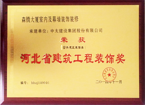 中太建設集團榮獲“2014年河北省建筑工程裝飾獎”