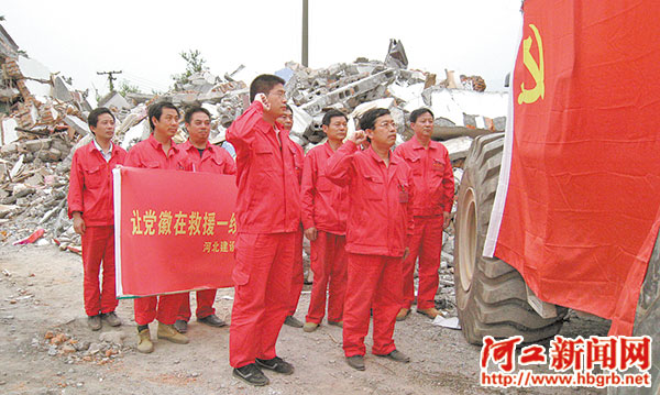 ■2008年汶川地震搶險(xiǎn)救災(zāi)現(xiàn)場(chǎng)舉行入黨儀式