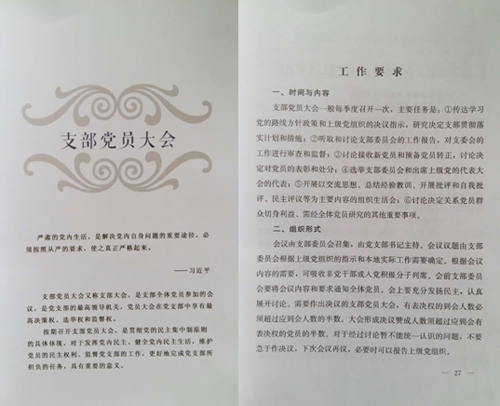 各支部書記要高度重視,不得懈怠。要按照《黨支部工作手冊》的要求認真、規范、詳細填寫記錄好“三會一課”、“黨員活動日”為民服務活動等相關工作內容,具體的由集團黨委秘書李文成同志為大家輔導講解。