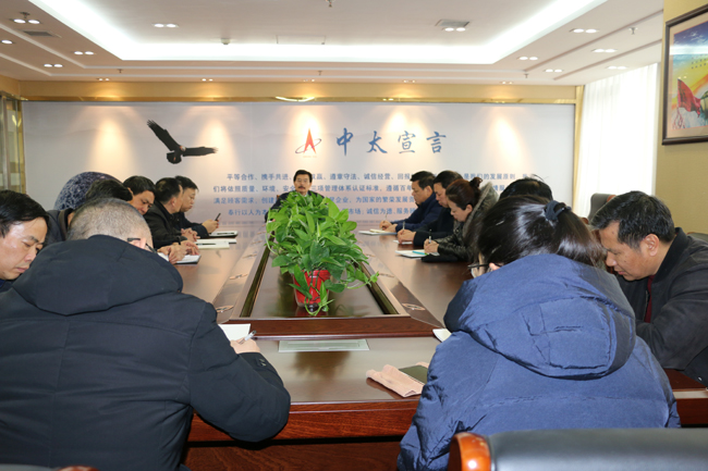 鐘崇鶴同志強調,2018年是貫徹落實黨的“十九大”精神和集團公司三屆黨代會精神的開局之年,也是集團公司“深化內部改革、創新轉型升級、持續健康發展”的關鍵之年,集團黨建工作要與時俱進,以黨的“十九大”精神為統領,從實際出發,緊緊圍繞國家“十三五”戰略發展規劃目標及企業當前與階段性的中心工作任務,積極開展有益于員工政治思想與身心健康的各項工作活動,在企業的經營管理發展中充分發揮好基層黨組織的凝聚力和黨員的模范帶頭作用,為打造中太系統的七大板塊發展戰略,增強中太可持續發展的經濟綜合實力和核心競爭力,完成好2018年集團公司各項工作任務和發展目標,實現中太的科學持續、健康和諧發展營造積極向上的良好氛圍和環境,為推動企業黨建工作的全面建設和河北廊坊的繁榮發展及實現黨中央提出的“四個全面”發展戰略目標做出新的更大貢獻。