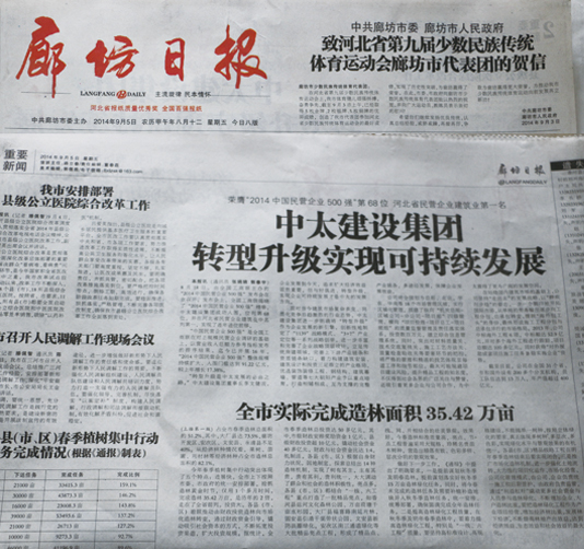 9月5日廊坊日報報道了中太建設集團轉型升級實現可持續發展