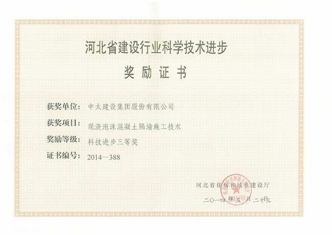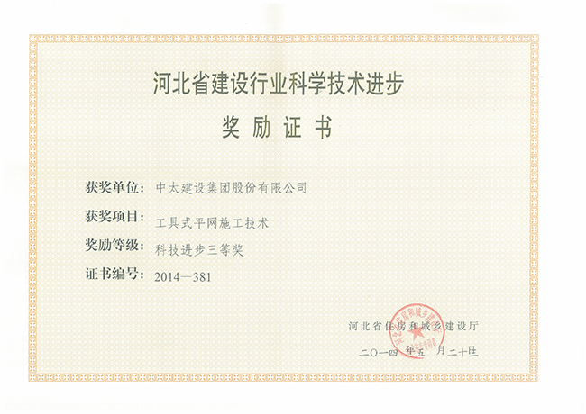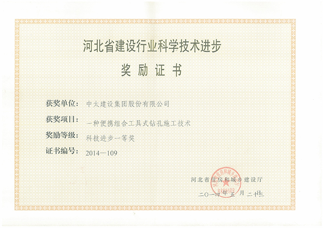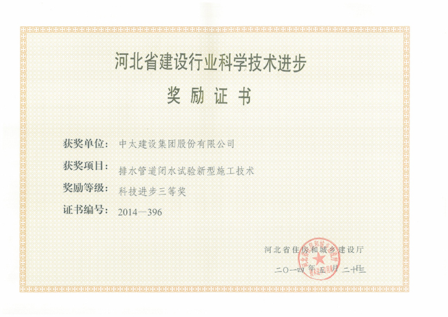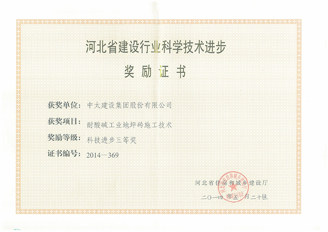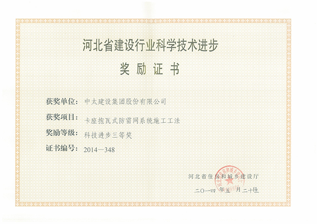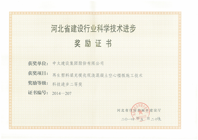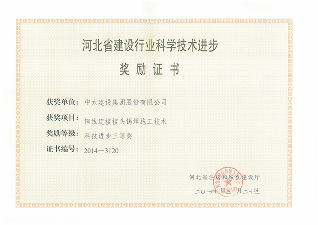 2014年河北省建設(shè)行業(yè)科學(xué)技術(shù)進(jìn)步獎(jiǎng)勵(lì)證書(shū)匯總