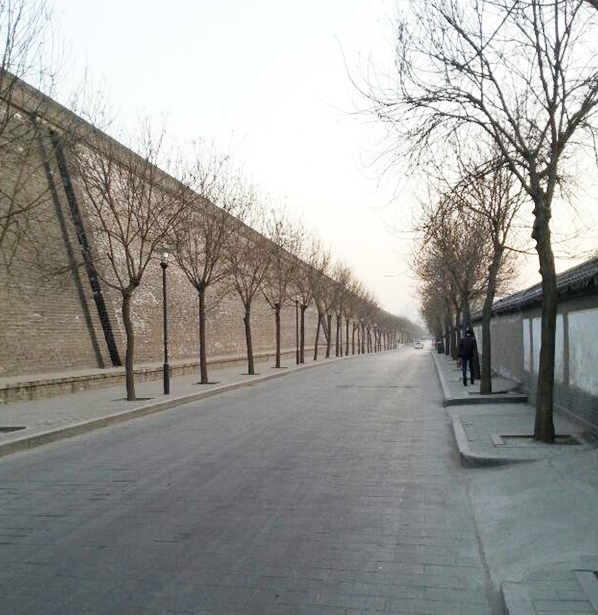 又行駛了半小時(shí)后到達(dá)了西安北站,出站后坐上去酒店的大巴,看著西安北站以及沿途的建筑,還是讓我體會(huì)到了一些古城的味道,雖然是新式建筑,但是色彩上卻都是灰色,我和同事猜測(cè)著可能是市政規(guī)劃要求的吧!隨著車子接近目的地,我們來(lái)到了古代長(zhǎng)安城里,在進(jìn)城的剎那,我們看到了高大的古城墻,導(dǎo)游告訴我們是這就是古代的長(zhǎng)安城,整個(gè)長(zhǎng)安城有這古城墻圍繞著,城墻外是護(hù)城河......這時(shí)我只被這長(zhǎng)長(zhǎng)的高大城墻震住了,導(dǎo)游的話已經(jīng)聽(tīng)不見(jiàn),眼看著大巴已經(jīng)進(jìn)入城里,城墻也被遠(yuǎn)遠(yuǎn)的甩在了后邊,還好沒(méi)過(guò)多久我們到了酒店。放下東西,吃過(guò)晚飯,和同事三五成群又走回了城墻根下,總是想著近距離接觸一下這令人震撼的墻體,“秋風(fēng)吹渭水,落葉下長(zhǎng)安。三千繁華已流盡,斜陽(yáng)斜照古城墻”,想起這詩(shī),無(wú)限的蒼涼感頓時(shí)油然而生。雖然此時(shí)不是秋天,也沒(méi)有斜陽(yáng),但是在這陰冷寂寥的冬日里,越發(fā)顯得沉重!