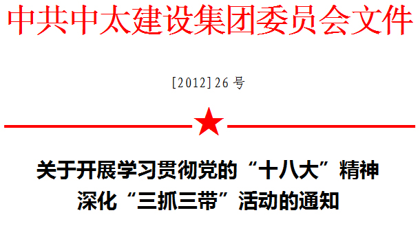 以科學發展觀為指導,以學習貫徹落實黨的“十八大”精神、爭創新業績為主線,圍繞“抓創新、促科學發展,抓項目、促員工增收,抓落實、促作風轉變”的主題,在集團公司各級黨組織中深入開展“三抓三帶”活動,團結帶領廣大黨員圍繞中心工作,履行崗位職責,在推動集團科學發展、創新發展、和諧發展中當先鋒、做表率,充分發揮好黨組織凝聚力和黨員模范帶頭作用,共同創造中太更加幸福美好的未來。